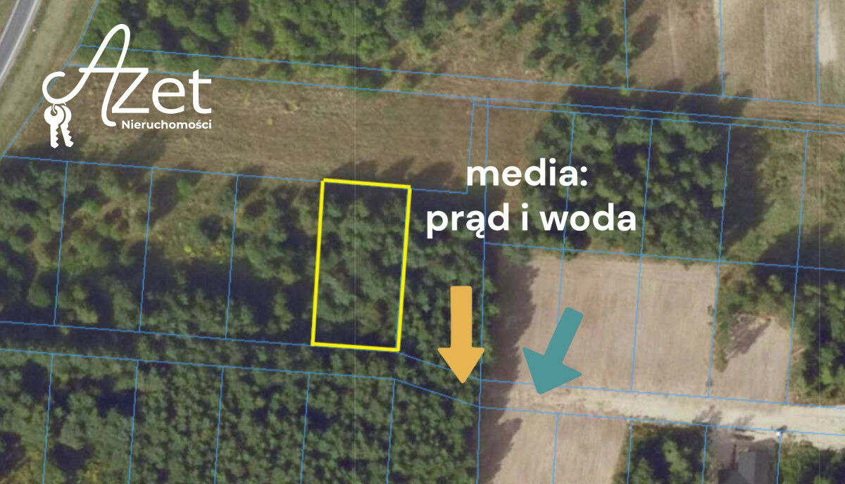 Do działki prowadzi utwardzona droga wewnętrzna ok 200 m. Do działki doprowadzone są media: woda , prąd, kanalizacja . Cicha spokojna okolica, las i łąka w sąsiedztwie dają gwarancje spokoju od zgiełku miasta.